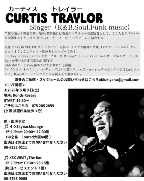 Anyone can now buy a ticket by going to LIVE POCKET Website and search for the BKTV + Name of artist. https://t.livepocket.jp/event/search Curtis Traylor LIVE !!!